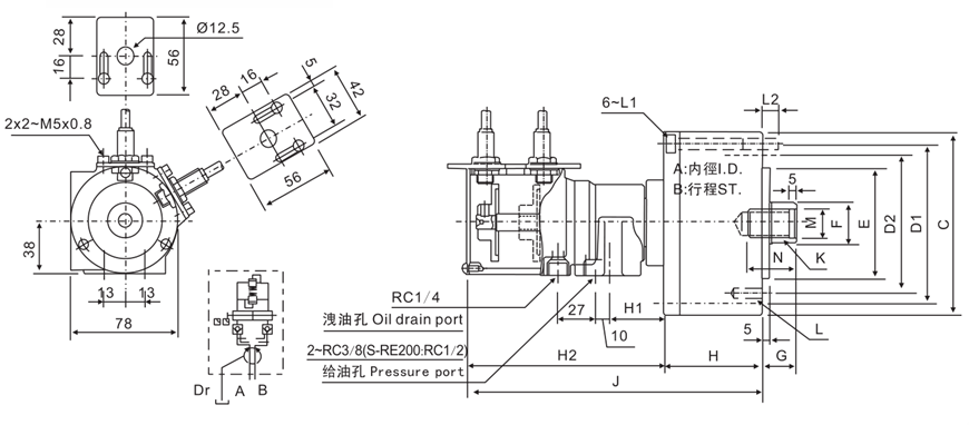 | S-125RE | 125 | 25 | 160 | 140 | 130 | 110 | 35 | 50 | 25 | 82 | 41 | 136 | 218 | M24×3.0 | 6~M12×20 | M8×85 | 12 | 25 | 45 |