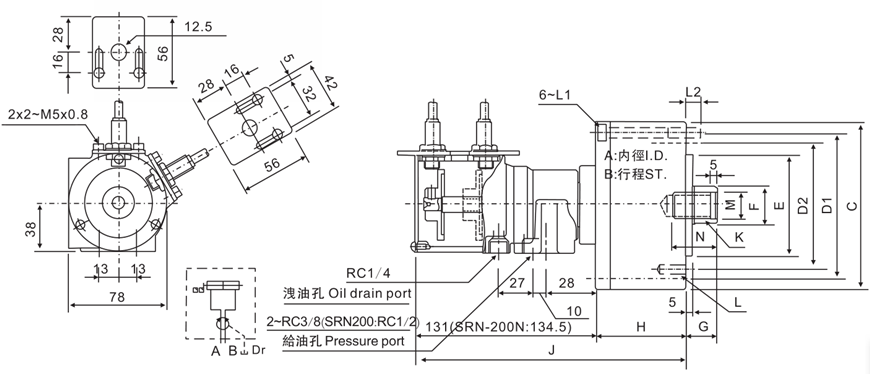 | SRN-200 | 200 | 35 | 245 | 220 | 145 | 120 | 55 | 75 | 35 | 115 | 249.5 | M36×4.0 | 12~M16×30 | M10×125 | 21 | 37 | 60 |