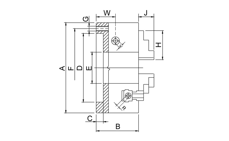 It can be used onto lathe machine, rotary table or CNC machine andso on, it can work for regular or irregular workpiece without changingthe chuck.