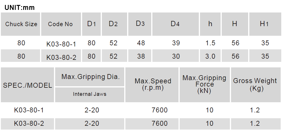 K03 SERIES 6-JAW LEVER SCROLL CHUCK