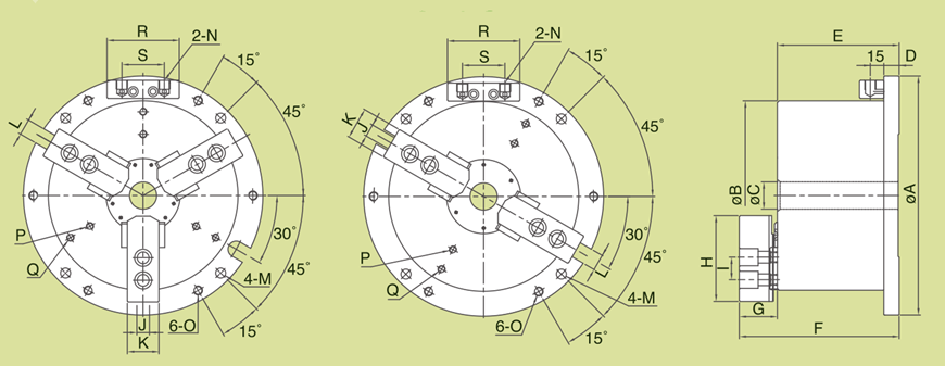 3,Benefits of built in cylinder: The cylinder is connected to chuck body directly for obtaining better stability, high clamping force, it's applicable for heavy turning and high accuracy and high effeciency demand.