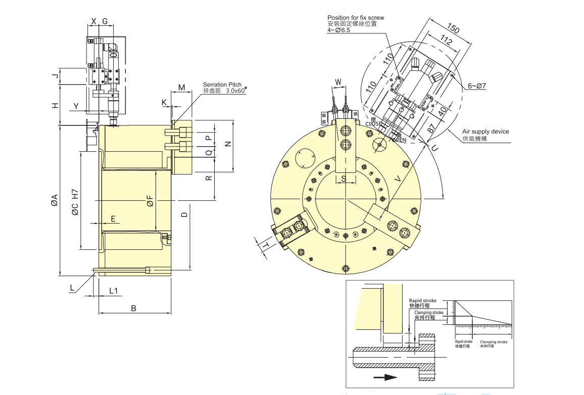 注意:快速行程阶段无法提供足够之夹持力。