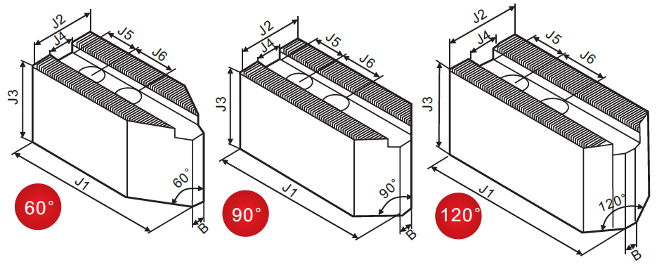 Option for pointed soft jaws:60/90/120 angle degree or other special requirements;Customized spec can be made.