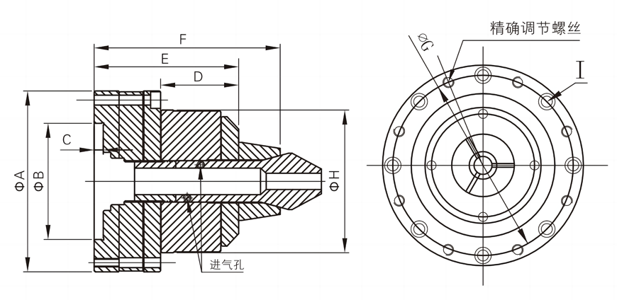 Direct connection between flange and spindle, easy and quickinstallation, connecting the machine tool system control through thethree-point air valve.Allowing quick change of the collet to facilitate product replacementwithout backward movement of collet while the working length can becontrolled normally.With a body accuracy within 0.005mm and adjustable clamping accuracywithin 0.005mm.