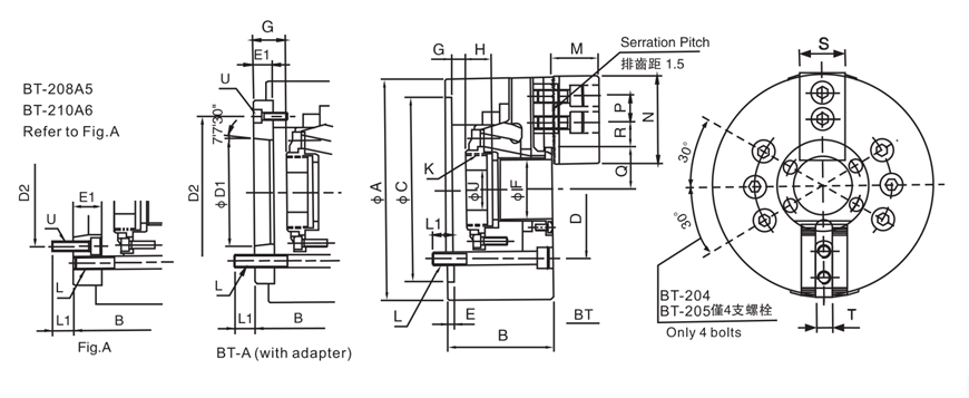 | BT-208 A5 | M60×2 | 6-M12 | 20 | 18 | 38 | 95 | 25 | 38.7 | 35 | 29.8 | 14.8 | 35 | 14 | 6-M10 |