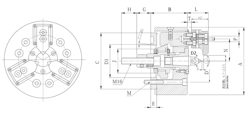 3 Jaw Compensation with center Power chuck