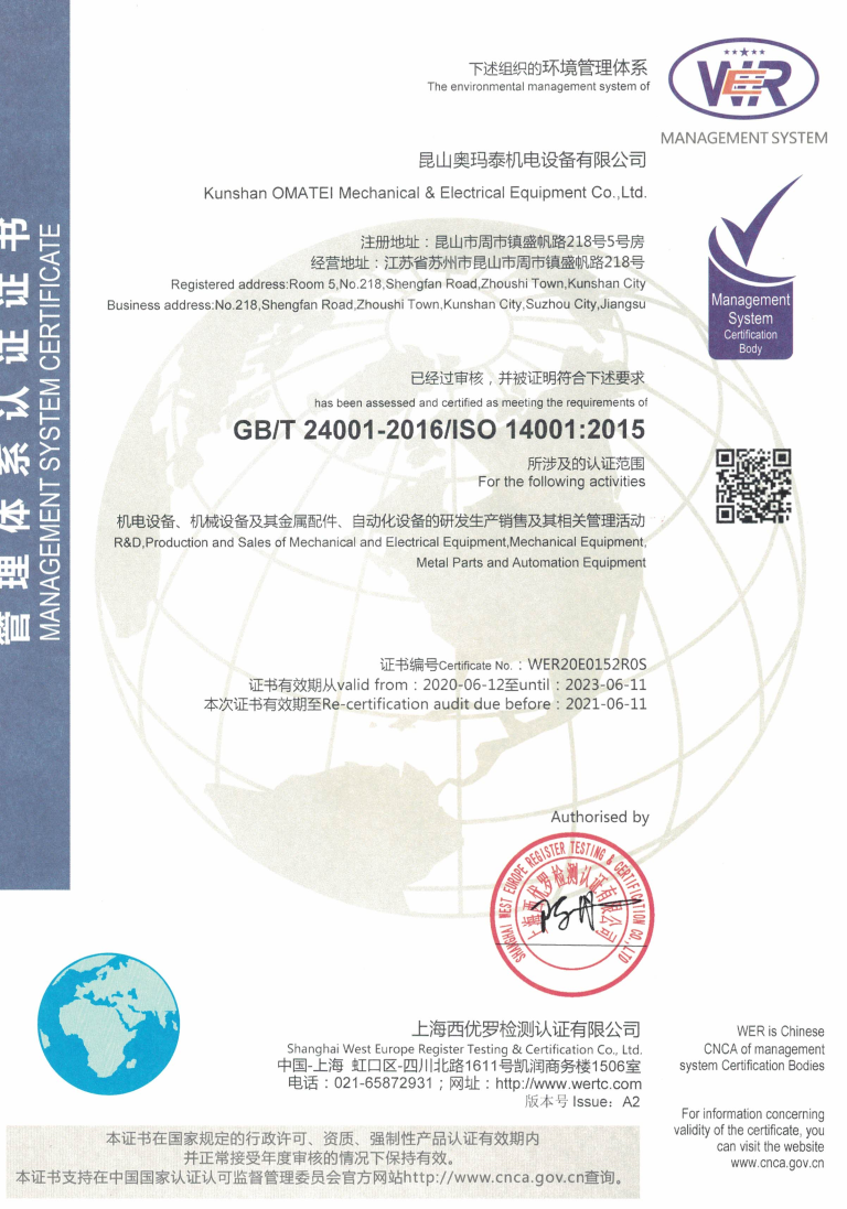 奥玛泰通过ISO14000认证