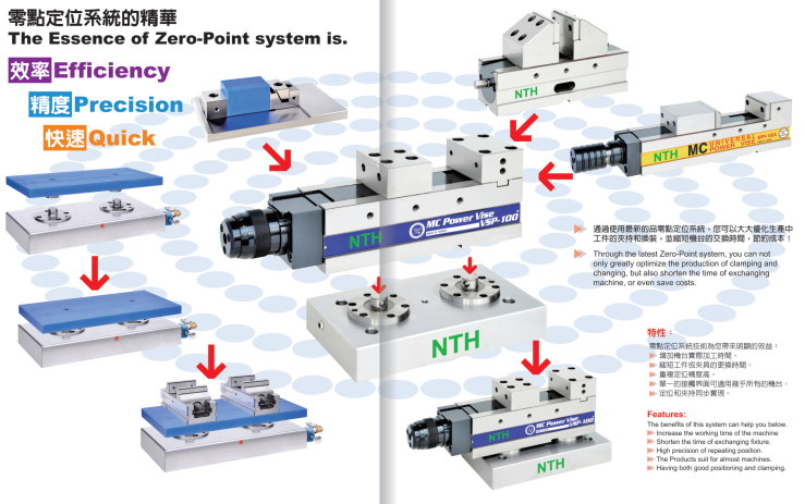 Using this latest ZERO POINT SYSTEMS, it can optimize the clamping and changing process and shorten the exchanging time, to save the cost and improve the efficiency.