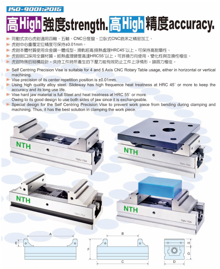 Special purpose vise for 5 side machining centers