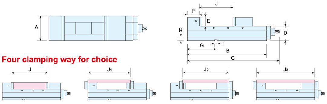 | MODEL | A | B | C | D | E | F | G | H | I | J | J1 | J2 | J3 | N.W. | .G.W | Clamping force |
