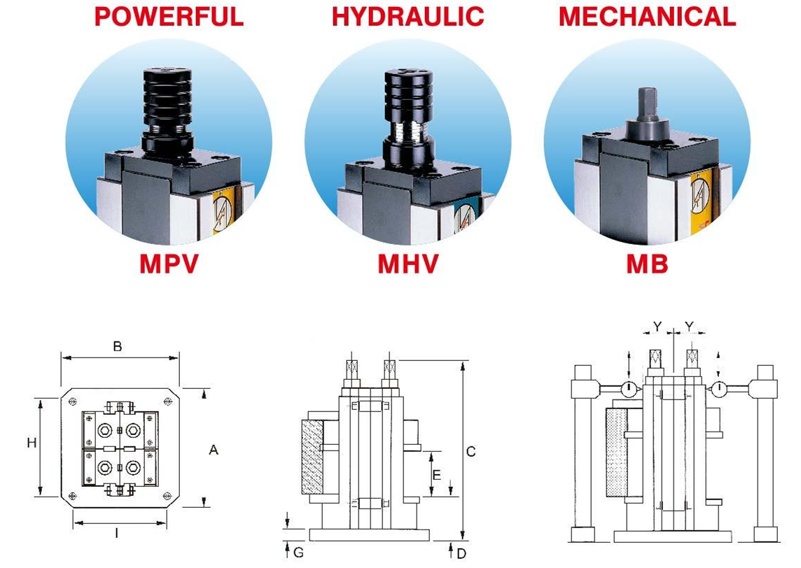 | MODEL | A | B | C | D | E | F | G | H | I | Clamping force |