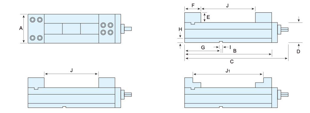 | MODEL | A | B | C | D | E | F | G | H | I | J | J1 | N.W. | G.W. | Clamping force |
