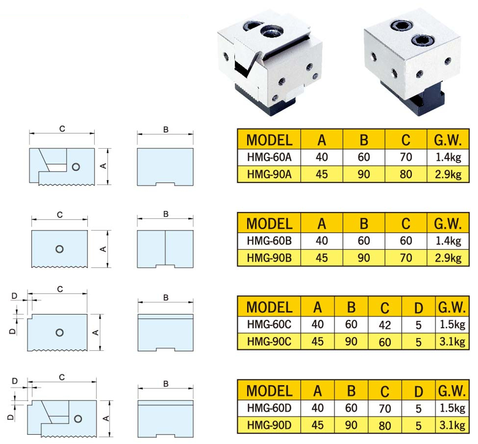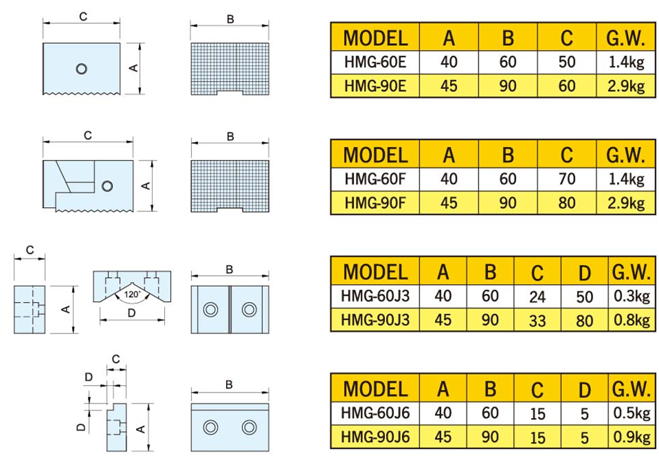 | HMG-6050 | 40 | 60 | 60 | 100 | 70 | 60 | M12 | 500 | 18 | 100 | 16kg |