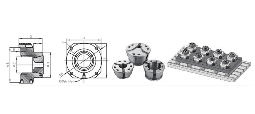 Fixed and non-rotating.Glue-injected flexible collet, parallel clamping, with a larger clamping surface and stronger gripping force.
