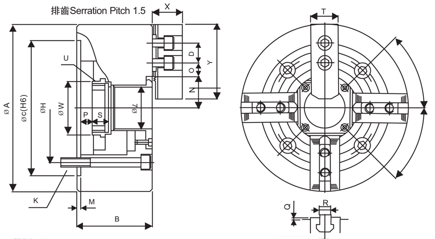 安裝:配合件直接安裝並符合 DIN, BS, ISO, ASA, B5-9, A型之主軸標準。