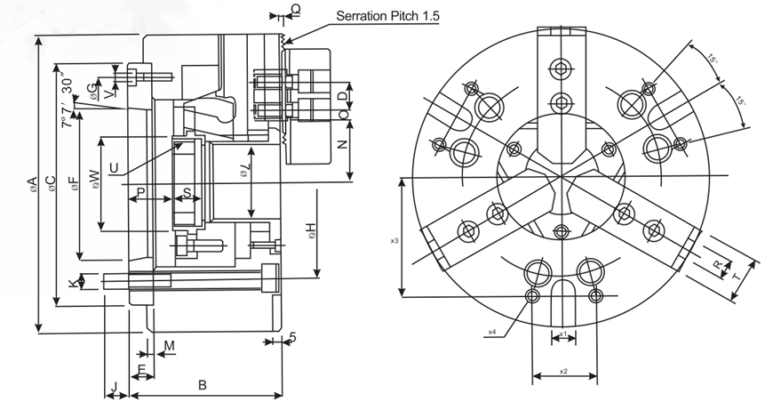 Pmax. | Pmin. | Q | R | S | T | Umax. | V | W | X | X2 | X3 | X4 | 參考值 |