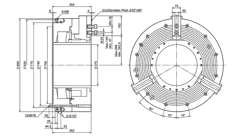 | 850-375 | 375 | 25.4 | 13.4 | 12 | 1342 | 2-10 | 250 | 750 | 980 | 110 | 68 |