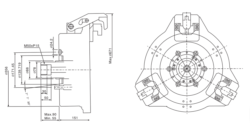 配合件直接安裝並符合DIN, BS, ISO, ASA, B5-9, A型之主軸標準。