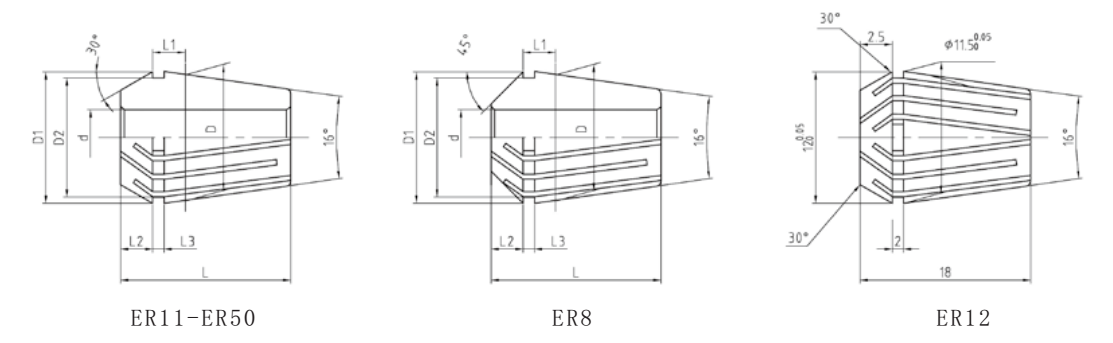 | ER11 | ER11 | ER16 | ER16 | ER20 | ER20 | ER25 | ER25 | ER32 | ER32 | ER40 | ER40 |
