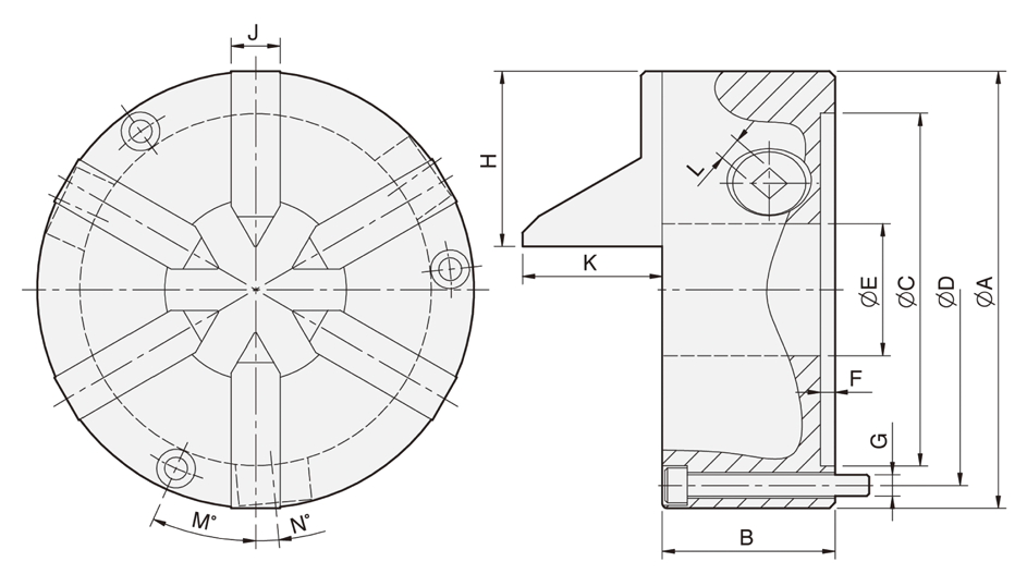 6-jaw scroll chuck plain back