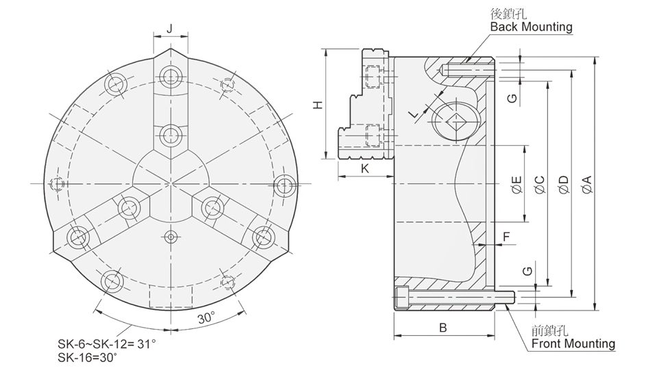 SK self-centering scroll chuck feature economical and durable, suitable for mass production.