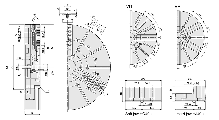 | VE-250 | 360 | 971 | 183 | MS250C | HJ40-1 | HC40-1 | Ø270-Ø1250 |