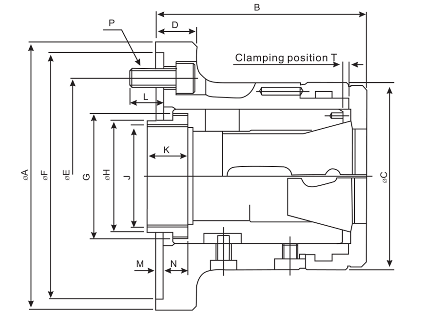 The installation of CR collet chuck is the same as through hole power chuck and can be replaced with each other.