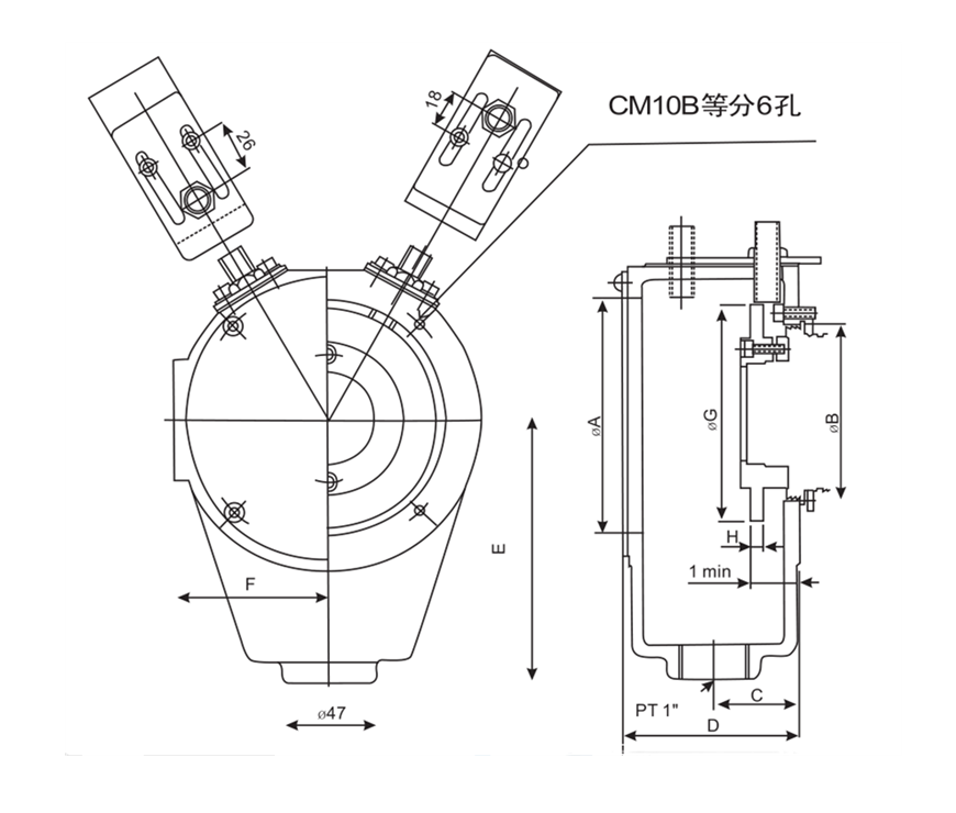 | CM18B | 123 | ─ | 150 | PT 1" | 155 | 47 | 4-M6 | Fig1 | M1868,M1875 | 2 |