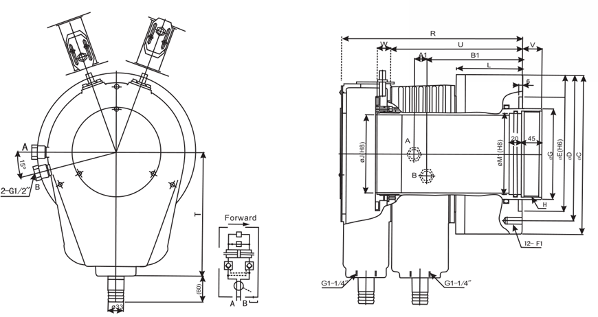 | Model/size | C | D | E(H6) | G | H | J | L | R | T | U | Vmax. | Vmin. | Wmax. | Wmin. | A1 | B1 | F1 | M1 |