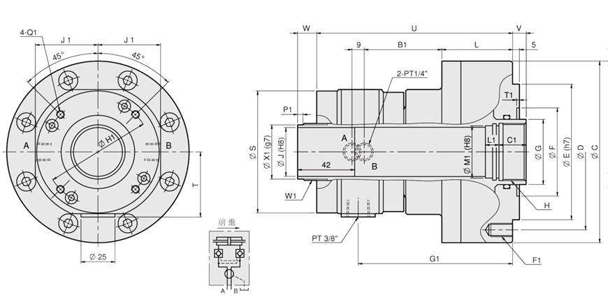 | MM1246A | 59.5 | 30 | 12-M10x20 | 140 | 105 | 59 | 15 | 50 | M6x10L | 6 | M52xP1.5 | 9 | 50 |